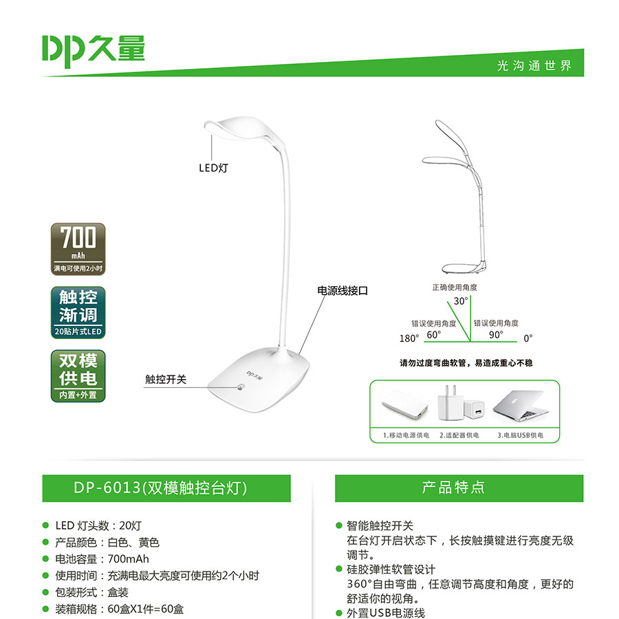 貼片光源:采用20顆進(jìn)口貼片LED燈,比普通LED燈提高50%亮度與壽命。