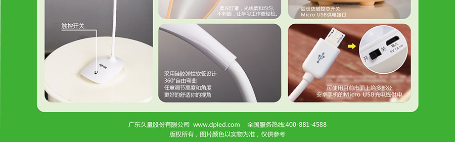 智能觸控開(kāi)關(guān):在臺(tái)燈開(kāi)啟狀態(tài)下,長(zhǎng)按觸摸鍵進(jìn)行亮度無(wú)級(jí)調(diào)節(jié)。
