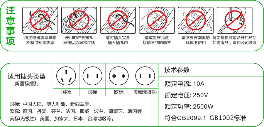 同極銅套一體沖壓成型、無焊點(diǎn)連接。銅套溫升低,產(chǎn)品可靠性能高。 高導(dǎo)電磷銅片鍍鎳處理,超長使用壽命,具有良好的耐磨性和導(dǎo)電性,插撥次數(shù)達(dá)到10 000次以上。 面板采用高性能阻燃工程塑料(俗稱防彈膠), 它富含絕氧因子, 遇明火迅速分解,可隔絕氧氣、高阻燃、耐高溫、抗震、耐摔、阻燃級別達(dá)到美國UL94-V0級。 所采用導(dǎo)線、插頭均按 CCC 認(rèn)證標(biāo)準(zhǔn)嚴(yán)格執(zhí)行,符合國家標(biāo)準(zhǔn)。 在2500W額定功率下持續(xù)使用,不易軟化變形,讓交流電傳輸更為理想。